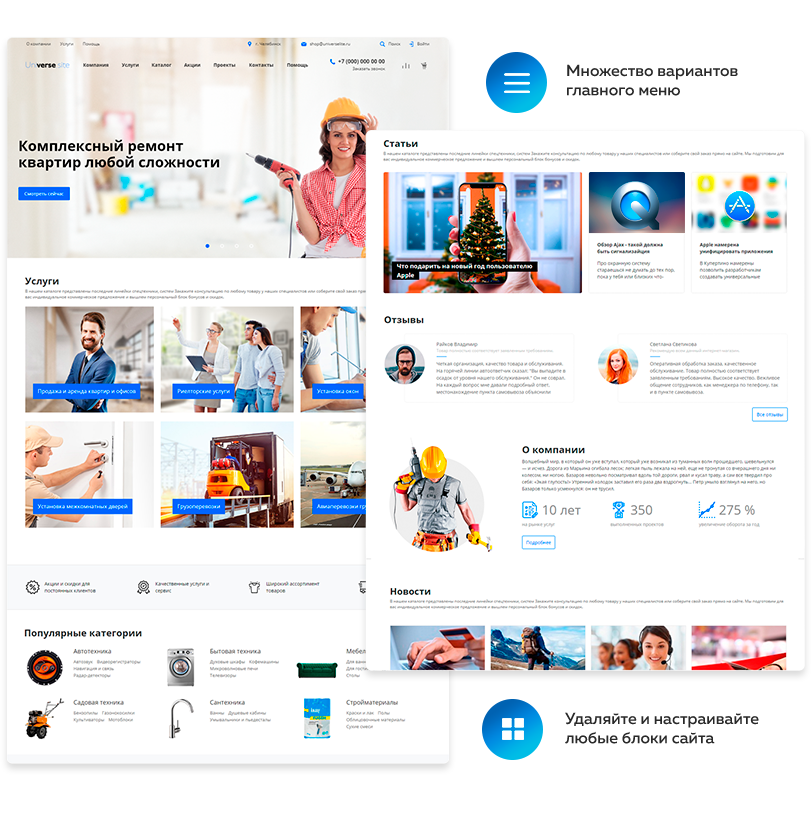 Все проекты реализованы на данном готовом решении, адаптированы под заказчика и его потребности.